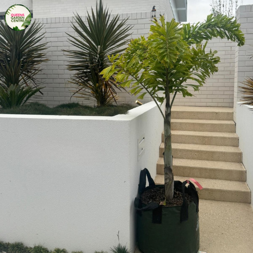 It gets its name from the distinctive shape of its leaves, which resemble a fox's tail. The scientific name for this tree is Wodyetia bifurcata.